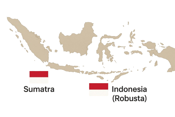 - Indonesia (Robusta): Bold and strong with deep, woody undertones — perfect for espresso blends.